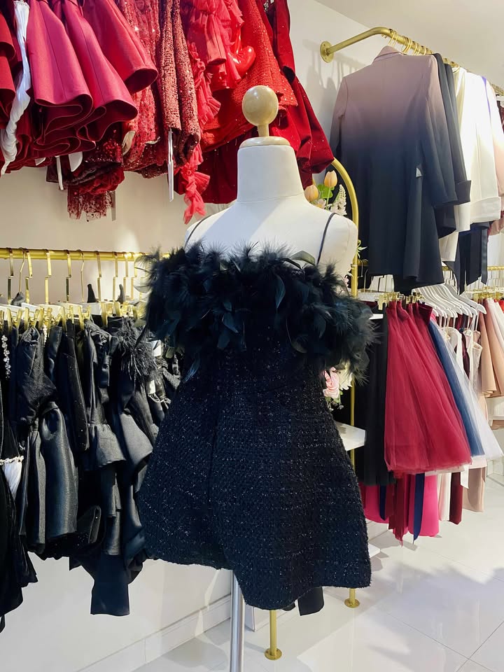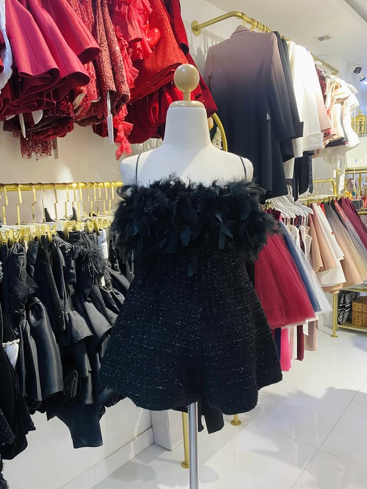 ชุดเดรส เกาะอก แต่งดอก สีดำ 2007 Size M