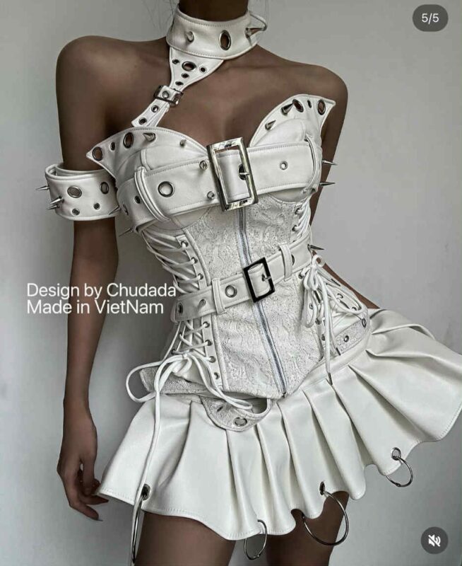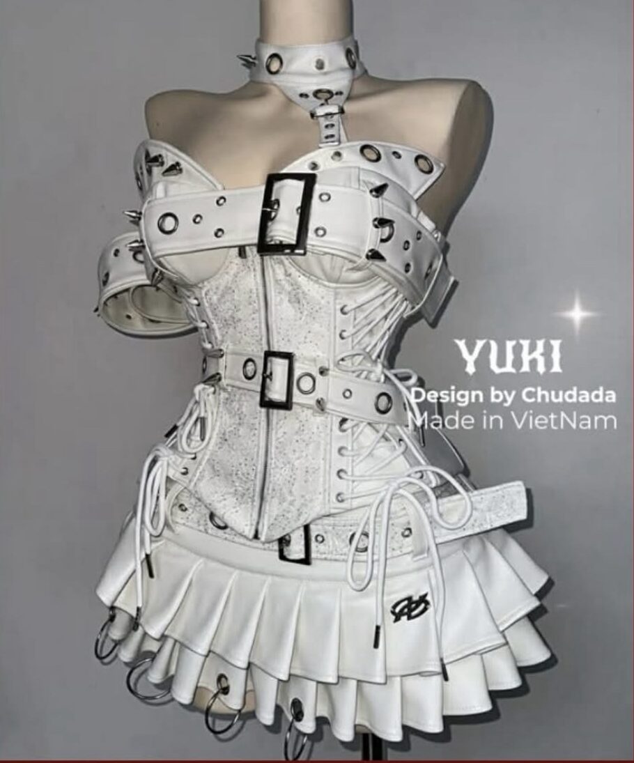 ชุดเซ็ท 2 ชิ้น เสื้อ+กระโปรง แต่งกลิตเตอร์ สีขาว 4006 Size S
