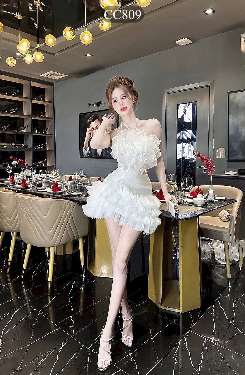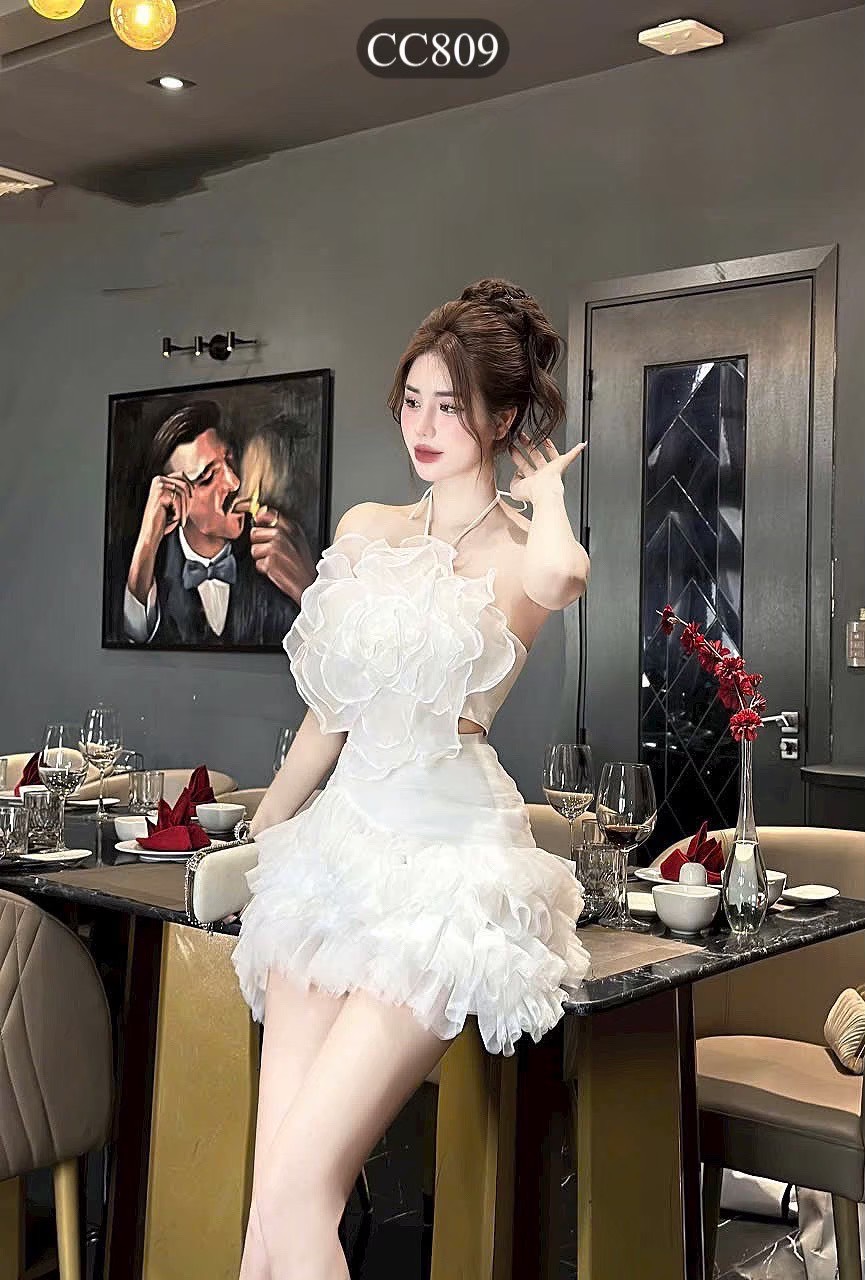 ชุดเซ็ท 2 ชิ้น เสื้อ+กระโปรง แต่งดอก สีขาว 4001 Size S