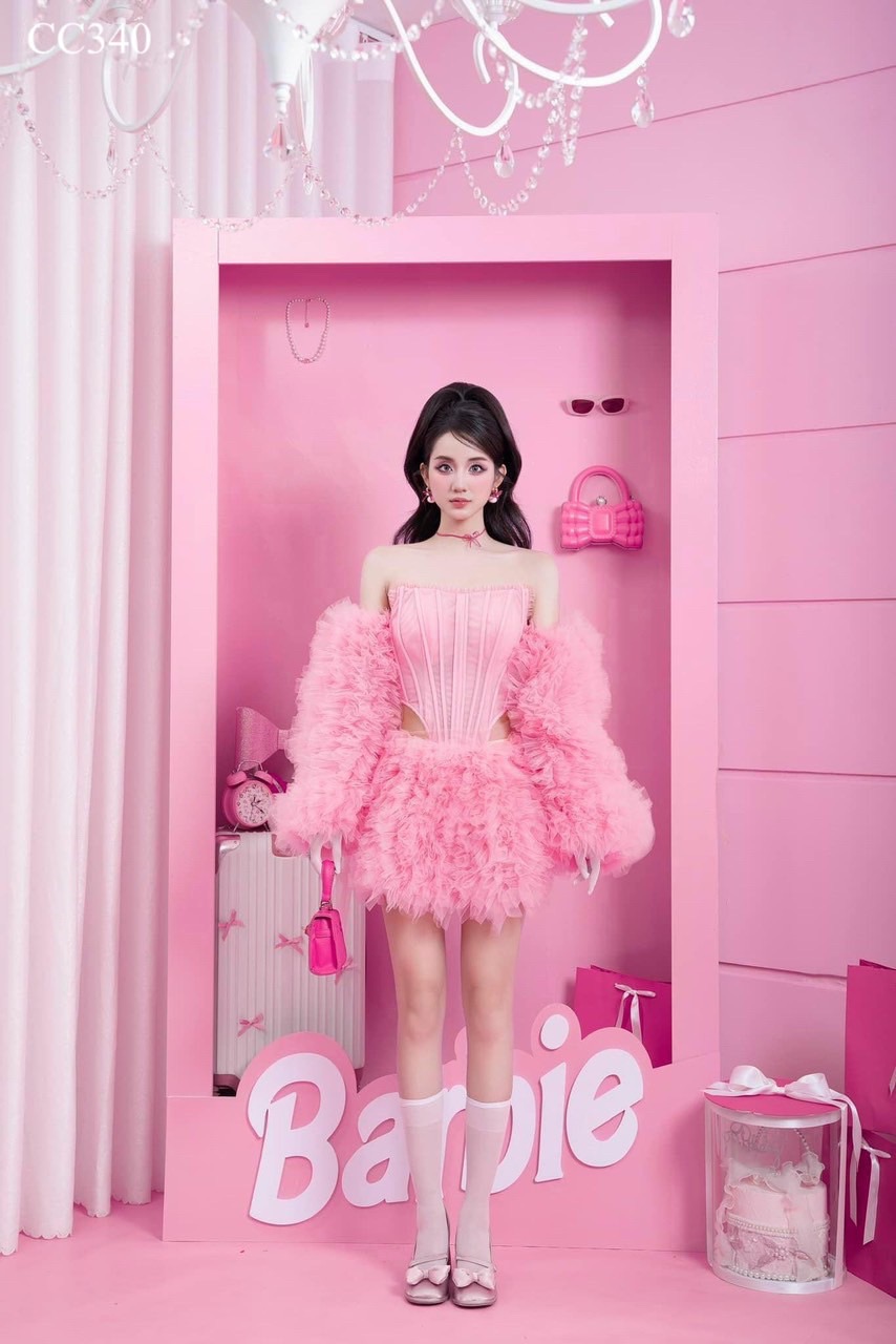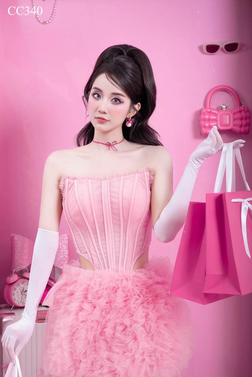 ชุดเซ็ท 3 ชิ้น เสื้อ+กระโปรง+ผ้าคลุม สีชมพู 4005 Size S