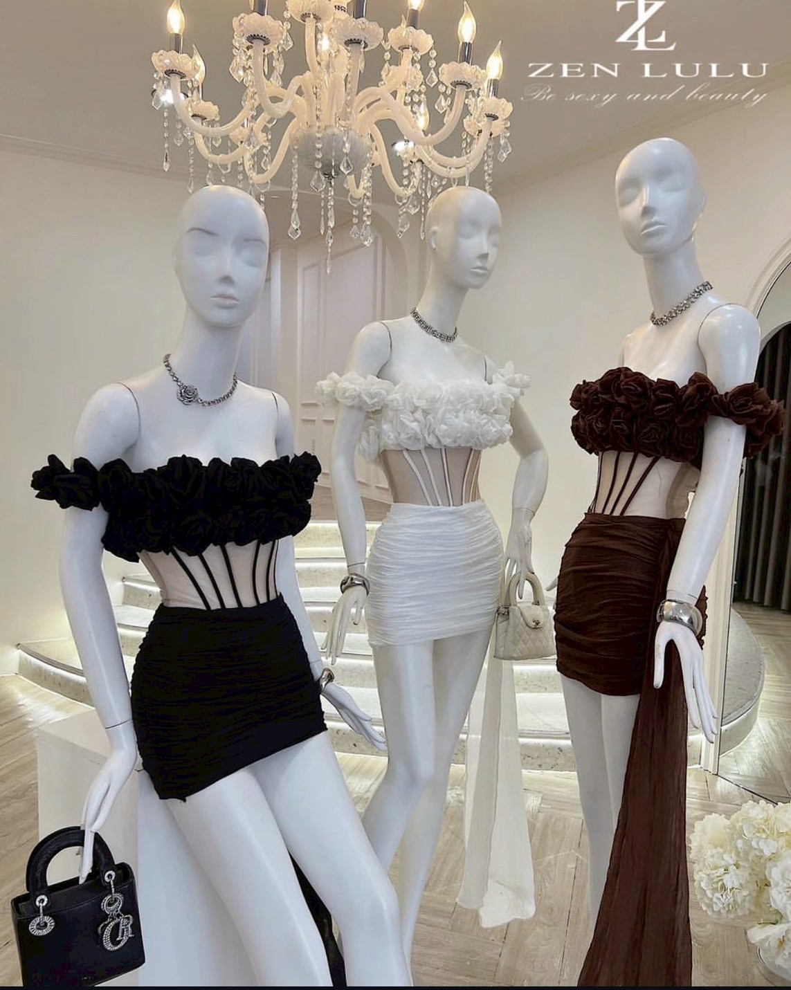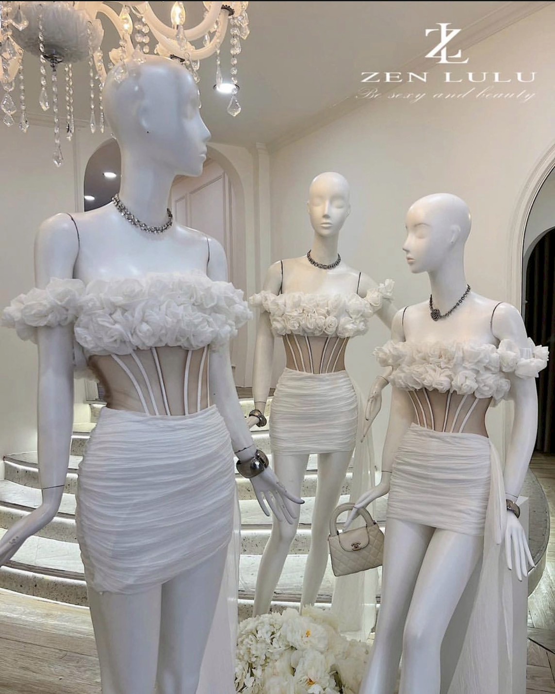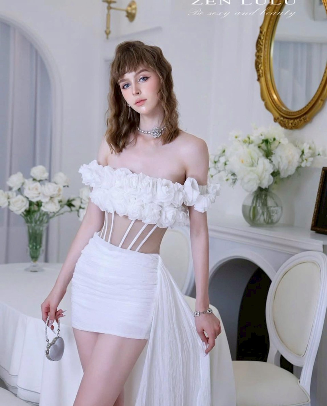 ชุดเดรส ปาดไหล่ กุหลาบ สีขาว ZEN LULU 2194 SIZE S-M