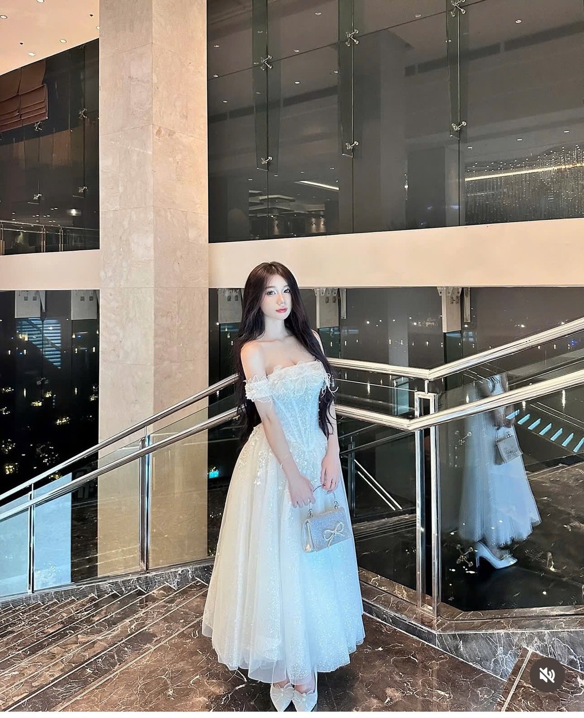 ชุดเดรส ปาดไหล่ แต่งดอก สีขาว Brand HiSo 2162 Size S