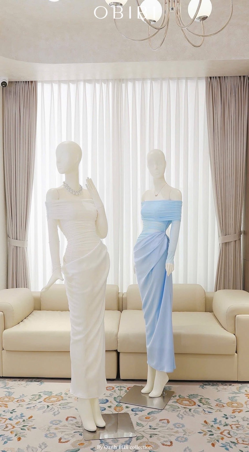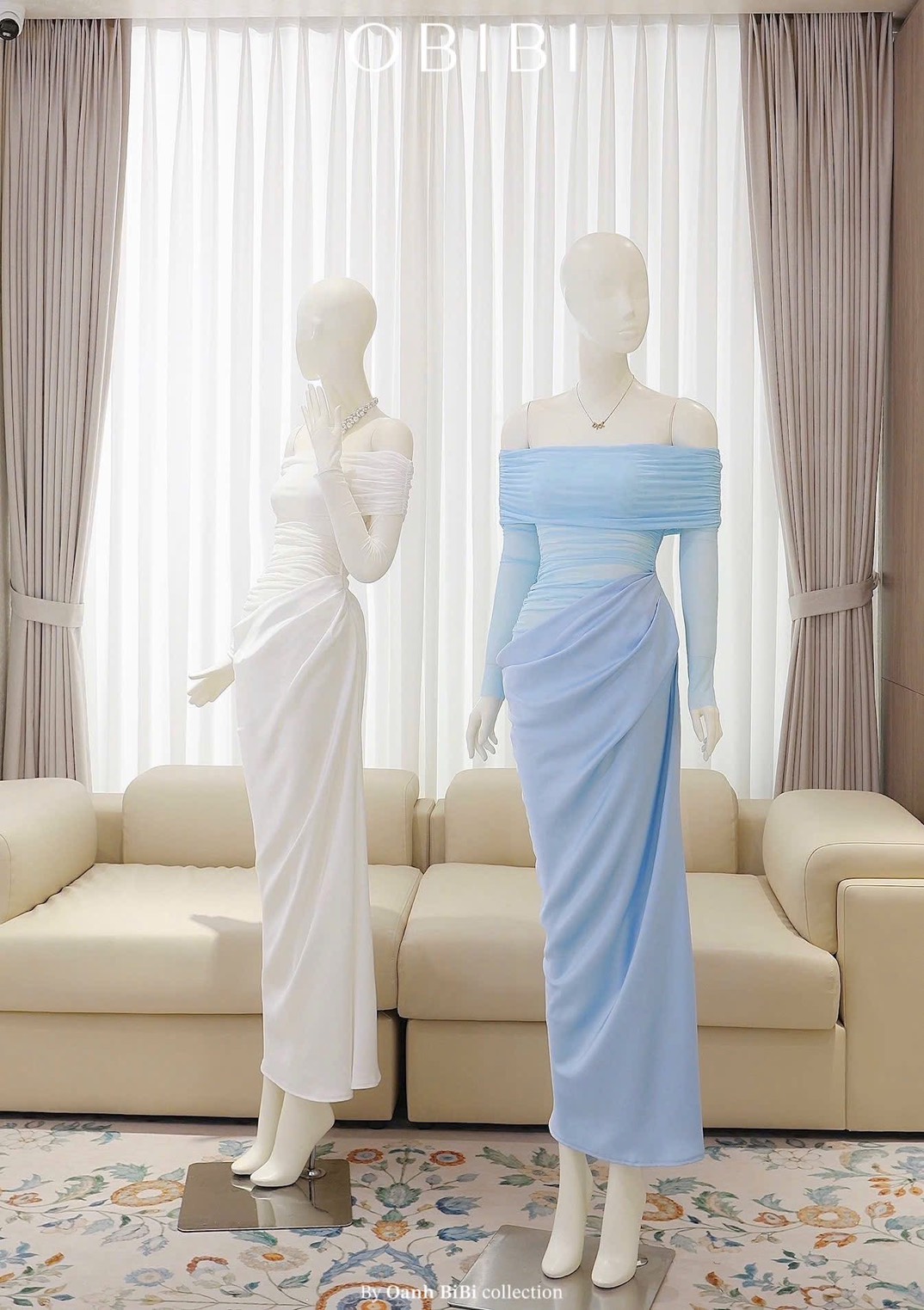 ชุดเดรส เกาะอก แต่งเพชร สีฟ้า 2005 Size M