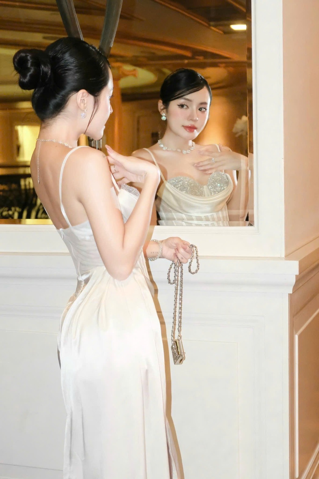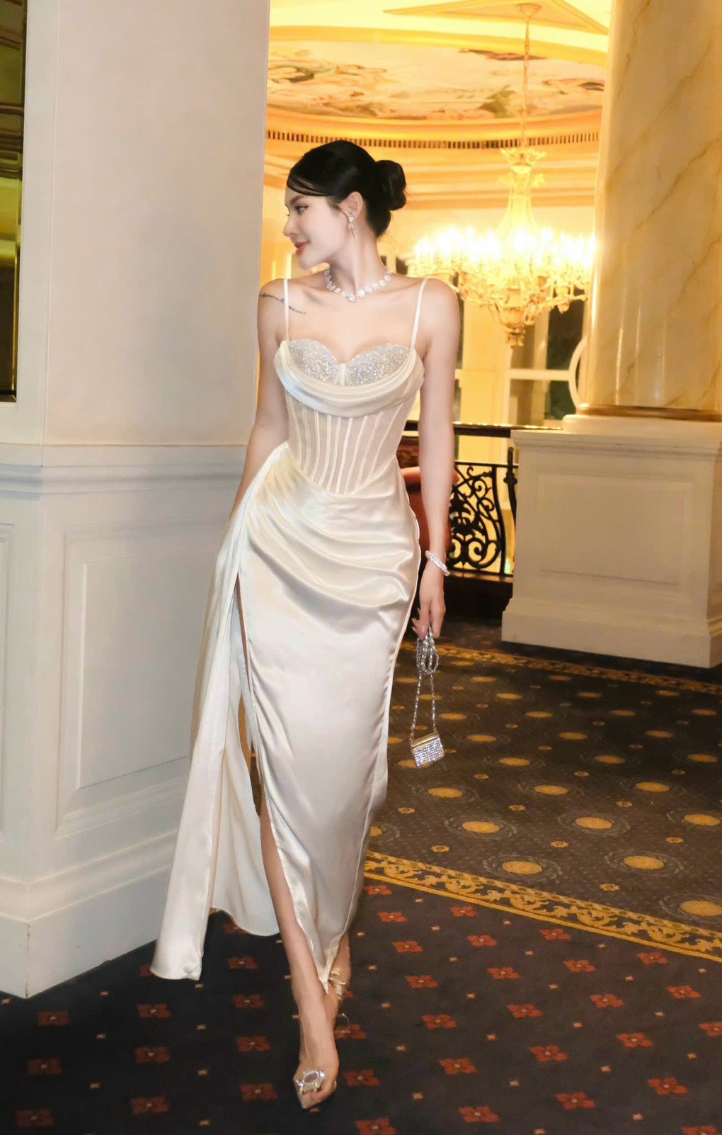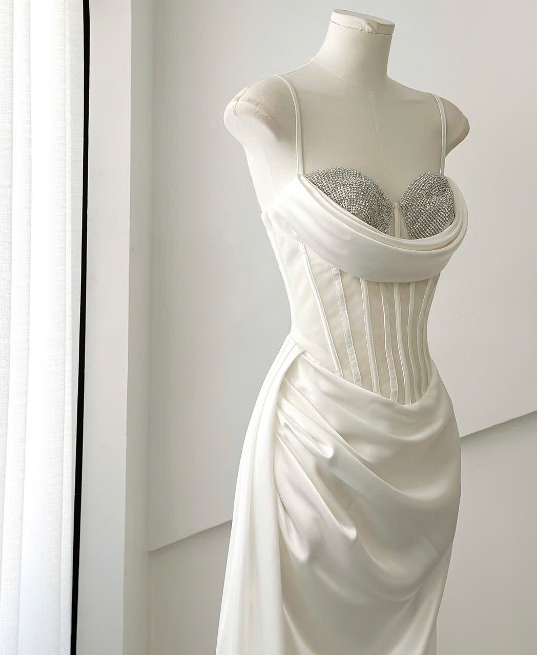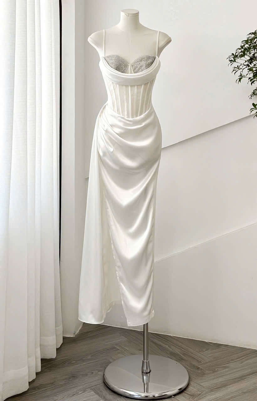 ชุดเดรส เกาะอก แต่งเพชร สีขาว 2011 Size S