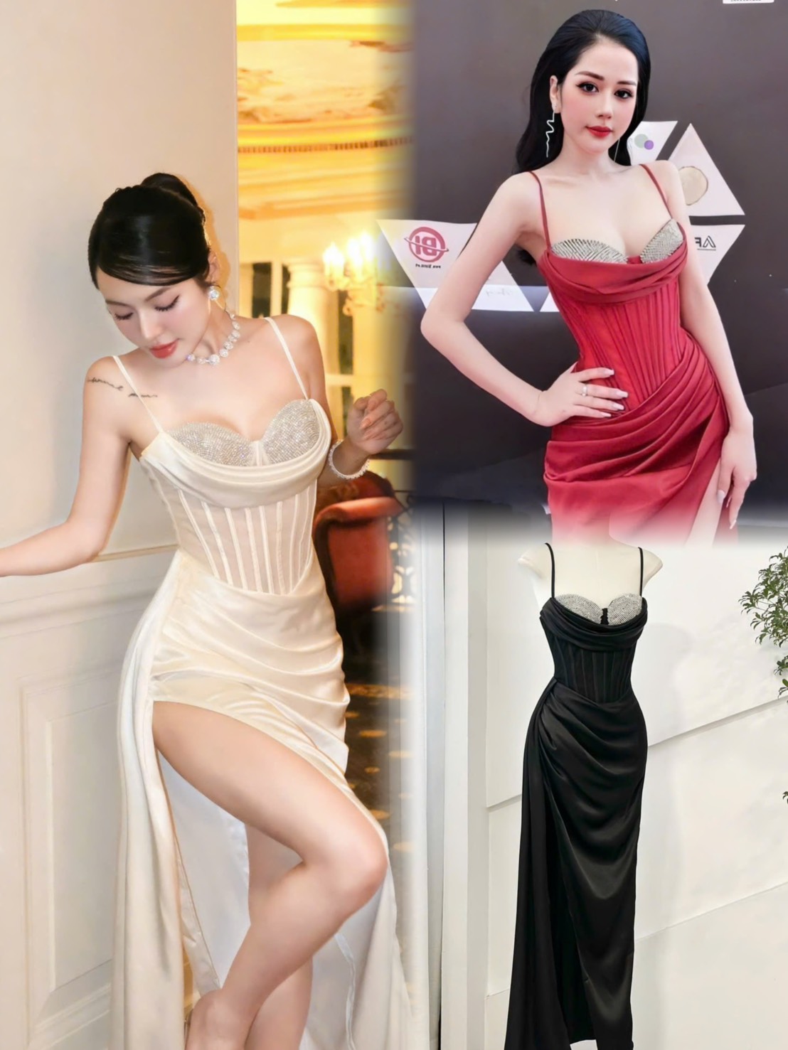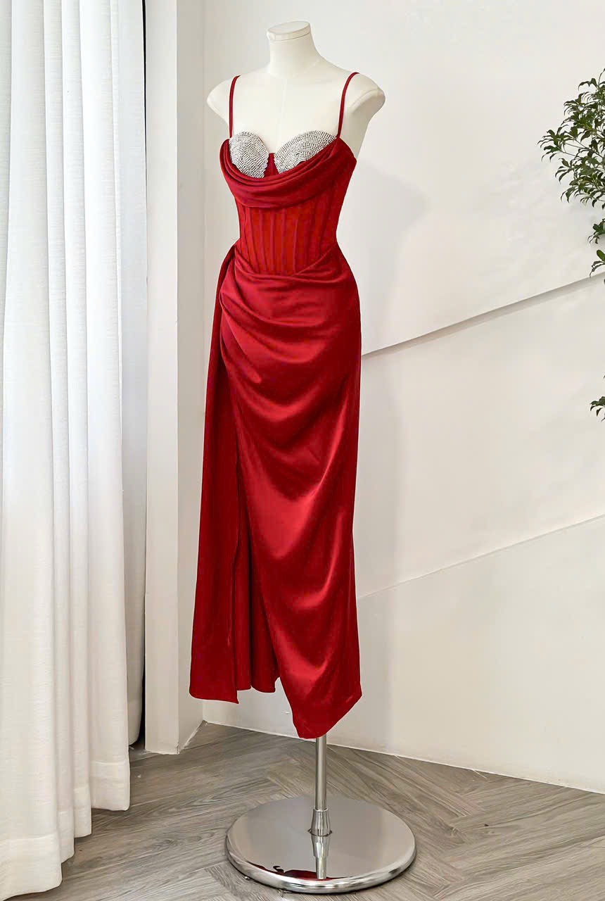 ชุดเดรส เกาะอก แต่งระบายยาว สีแดง 2012 Size S