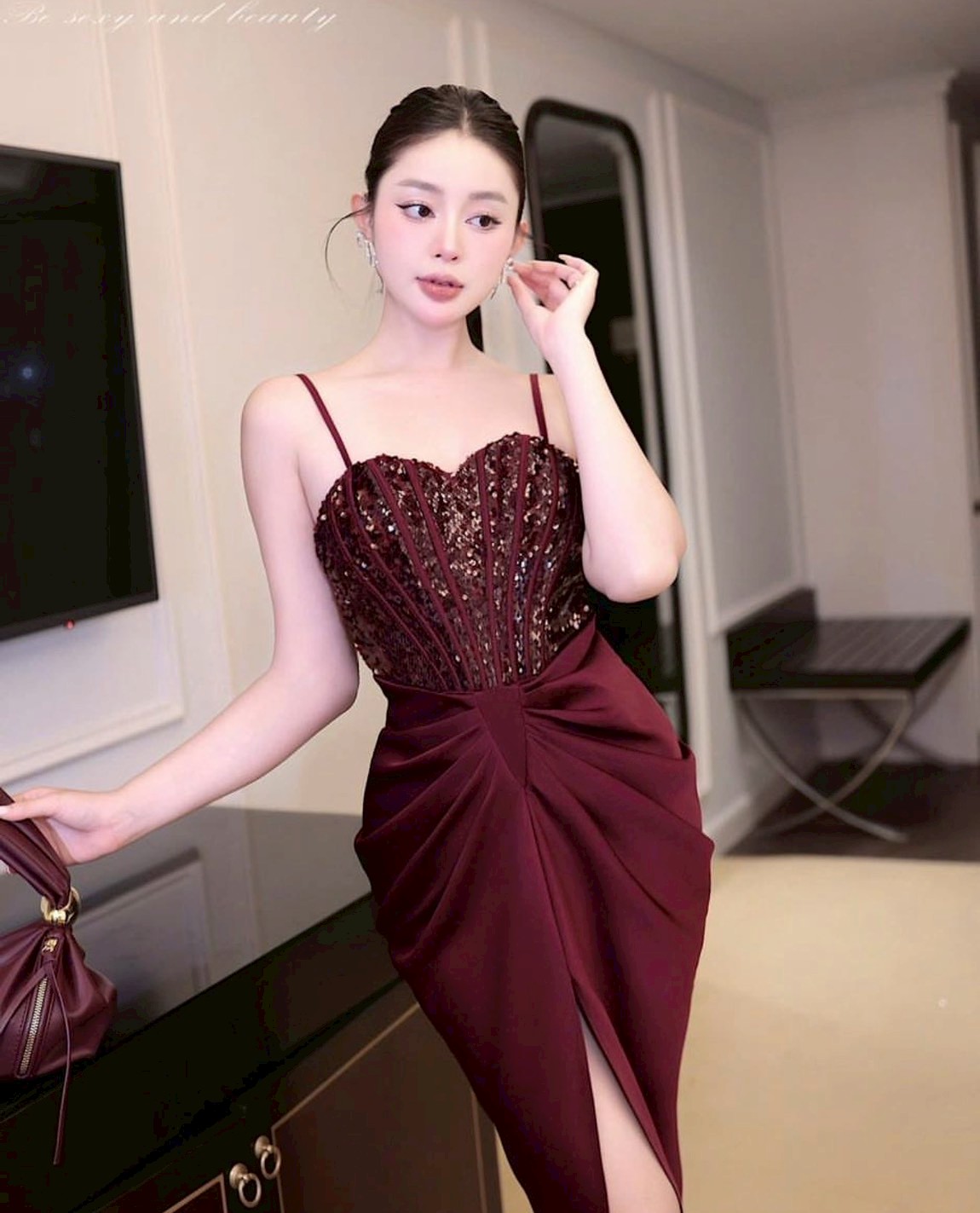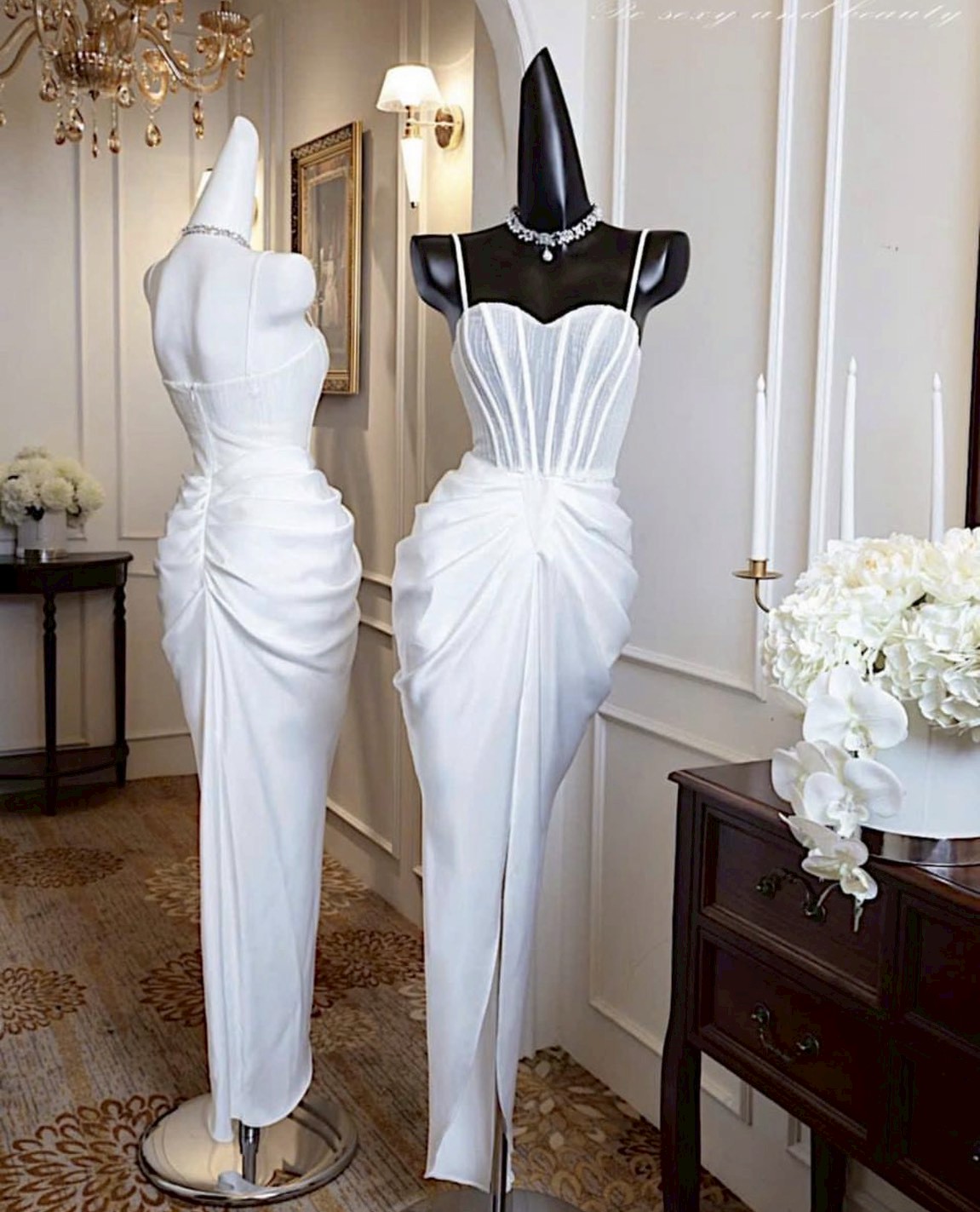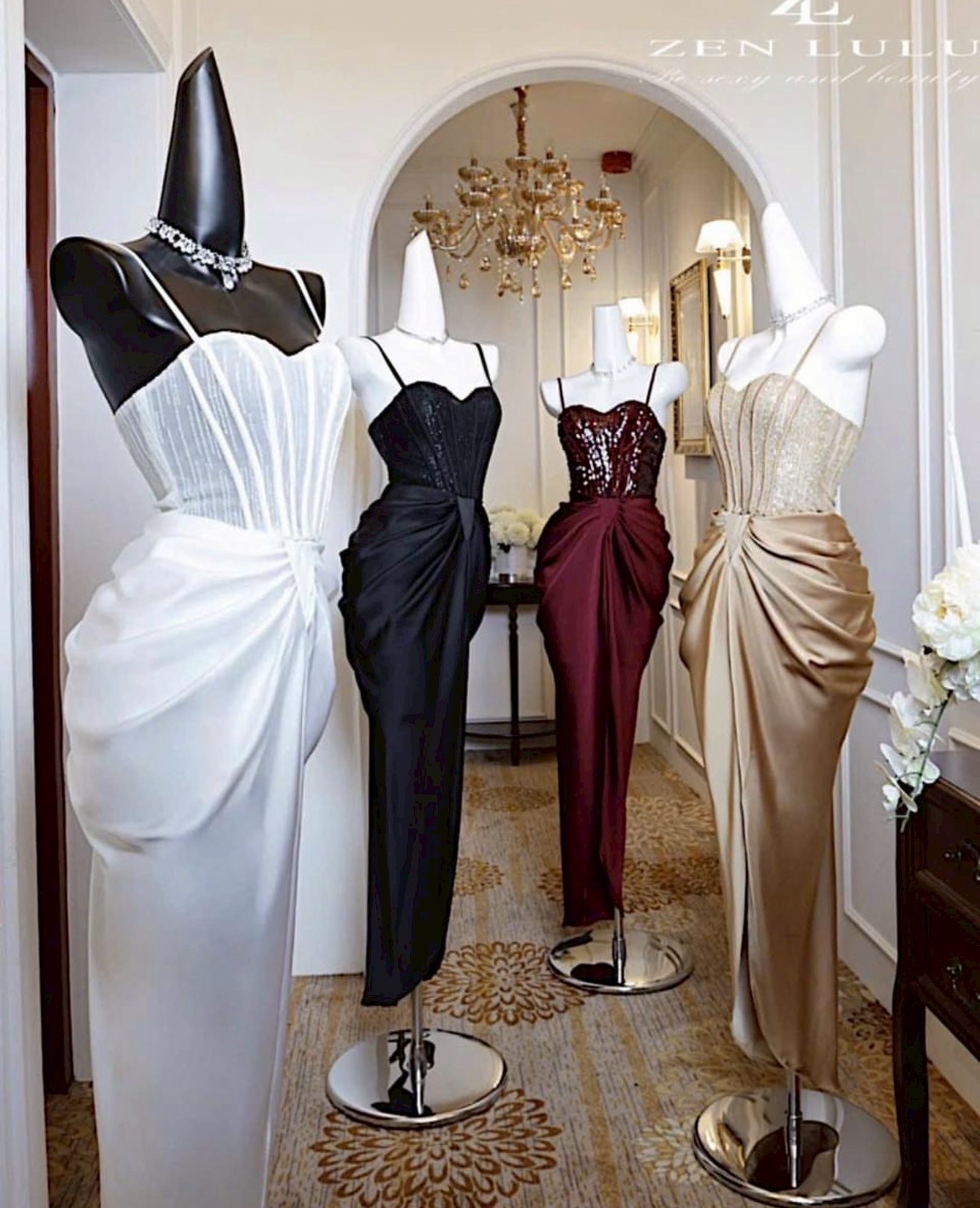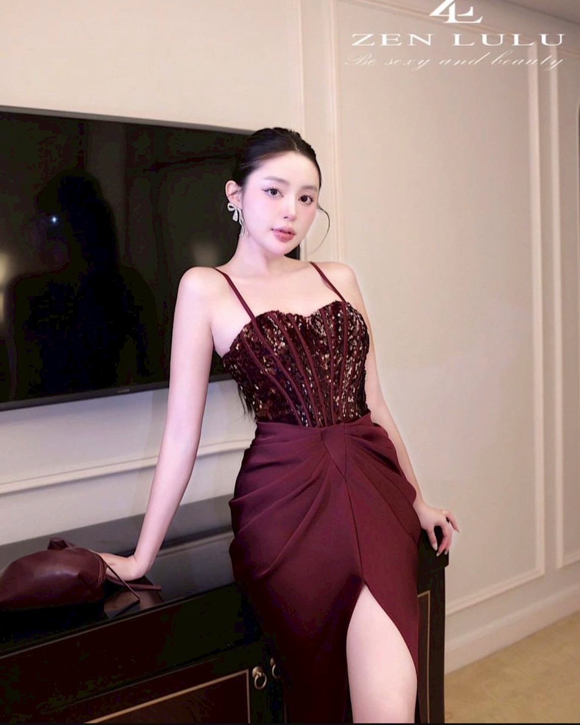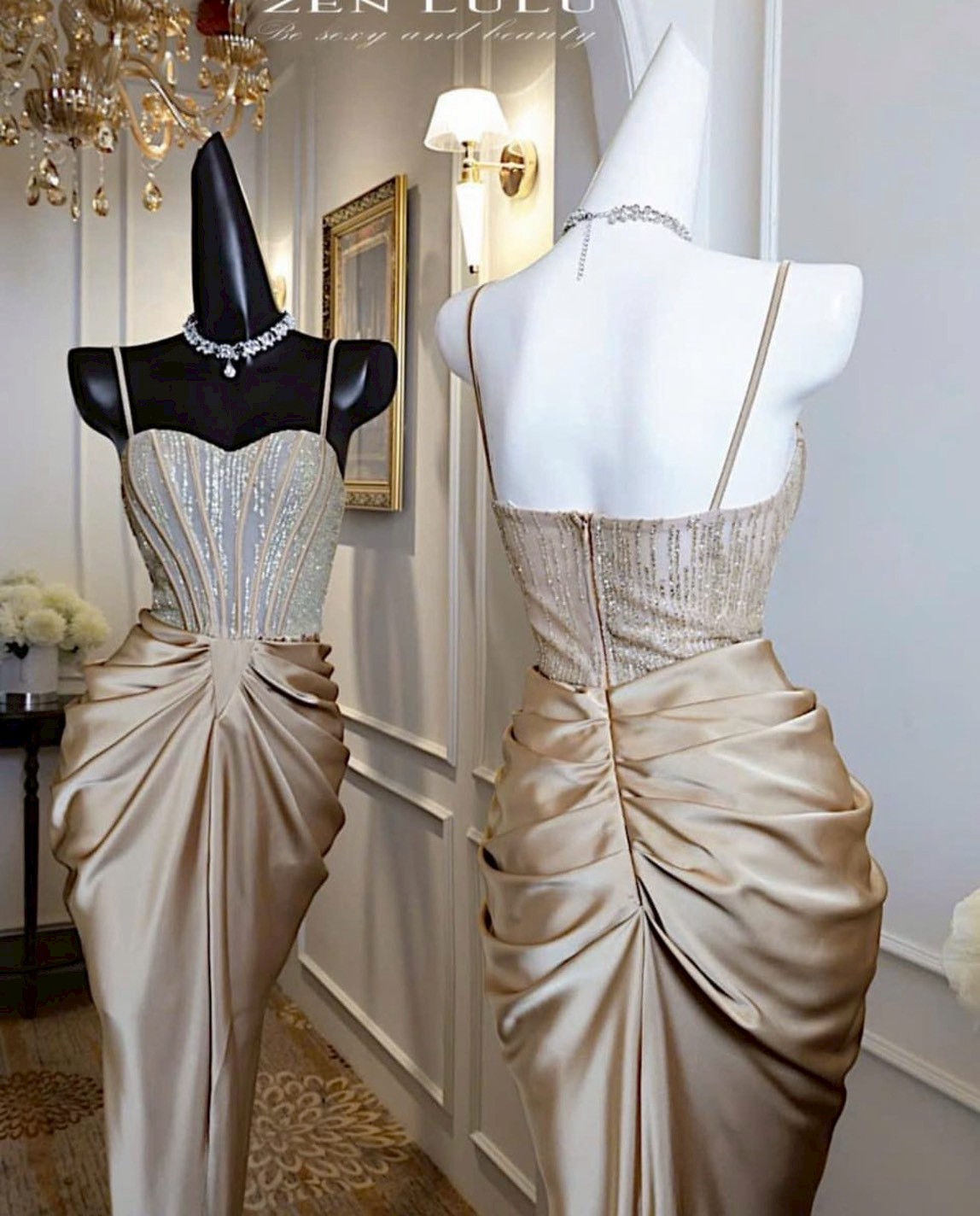ชุดเดรส-ราตรี สายเดี่ยว สีขาว สีแดง สีครีมทอง ZEN LULU 3070 SIZE S-M