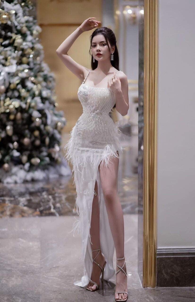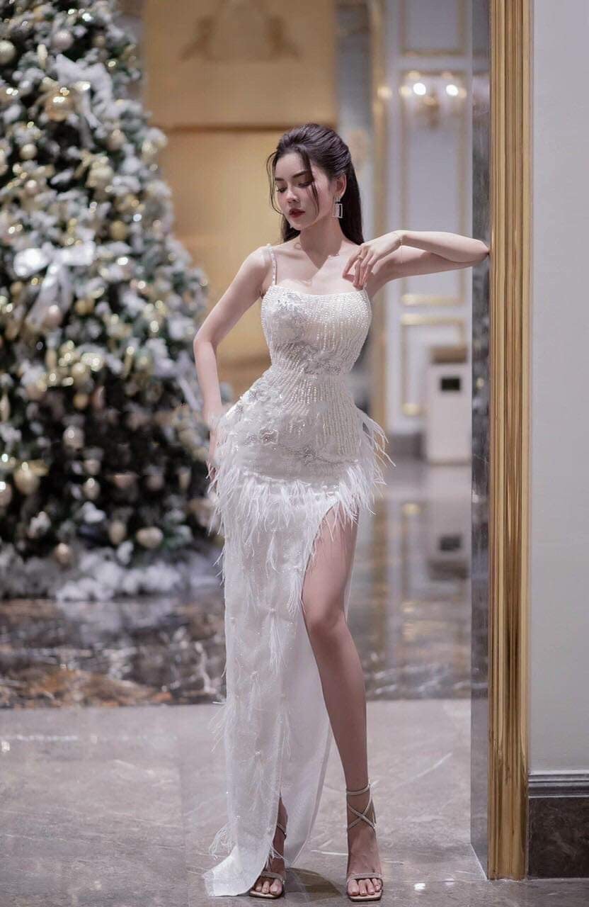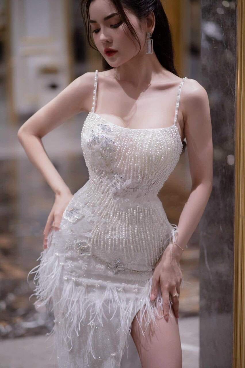 ชุดเดรส ราตรี สีขาว ขนนก Brand HiSo 3039 Size S-M