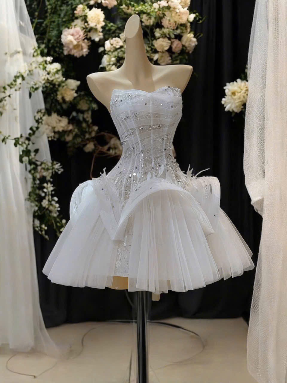 ชุดเดรส เกาะอก แต่งเพชร สีขาว 2011 Size S