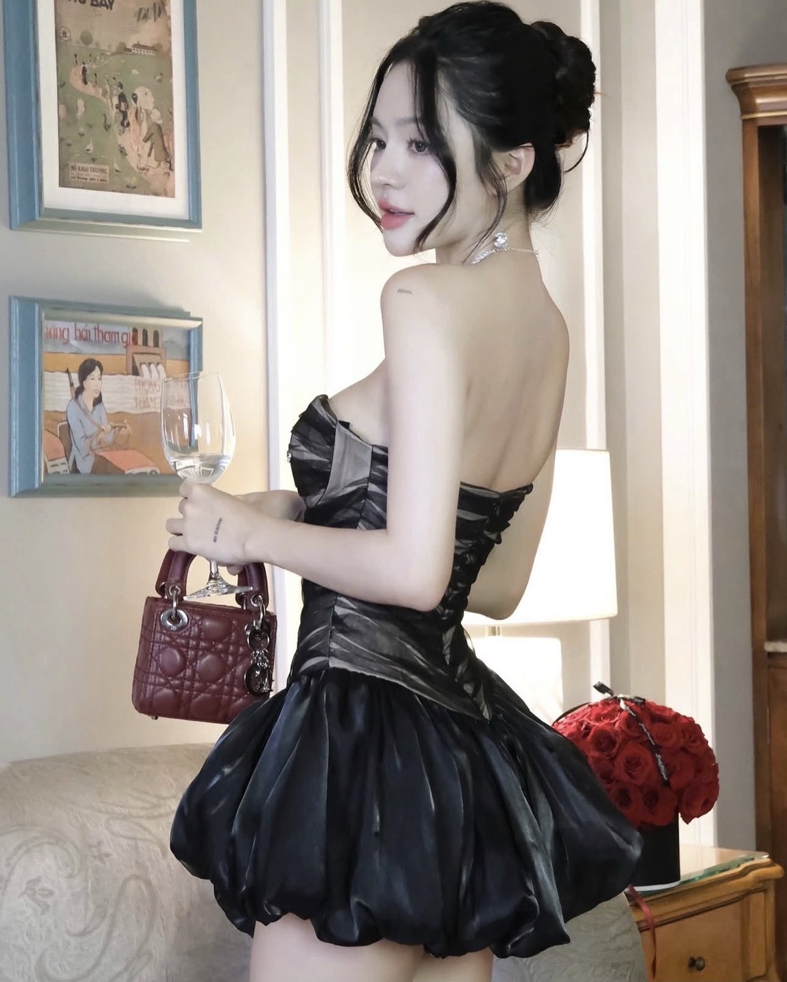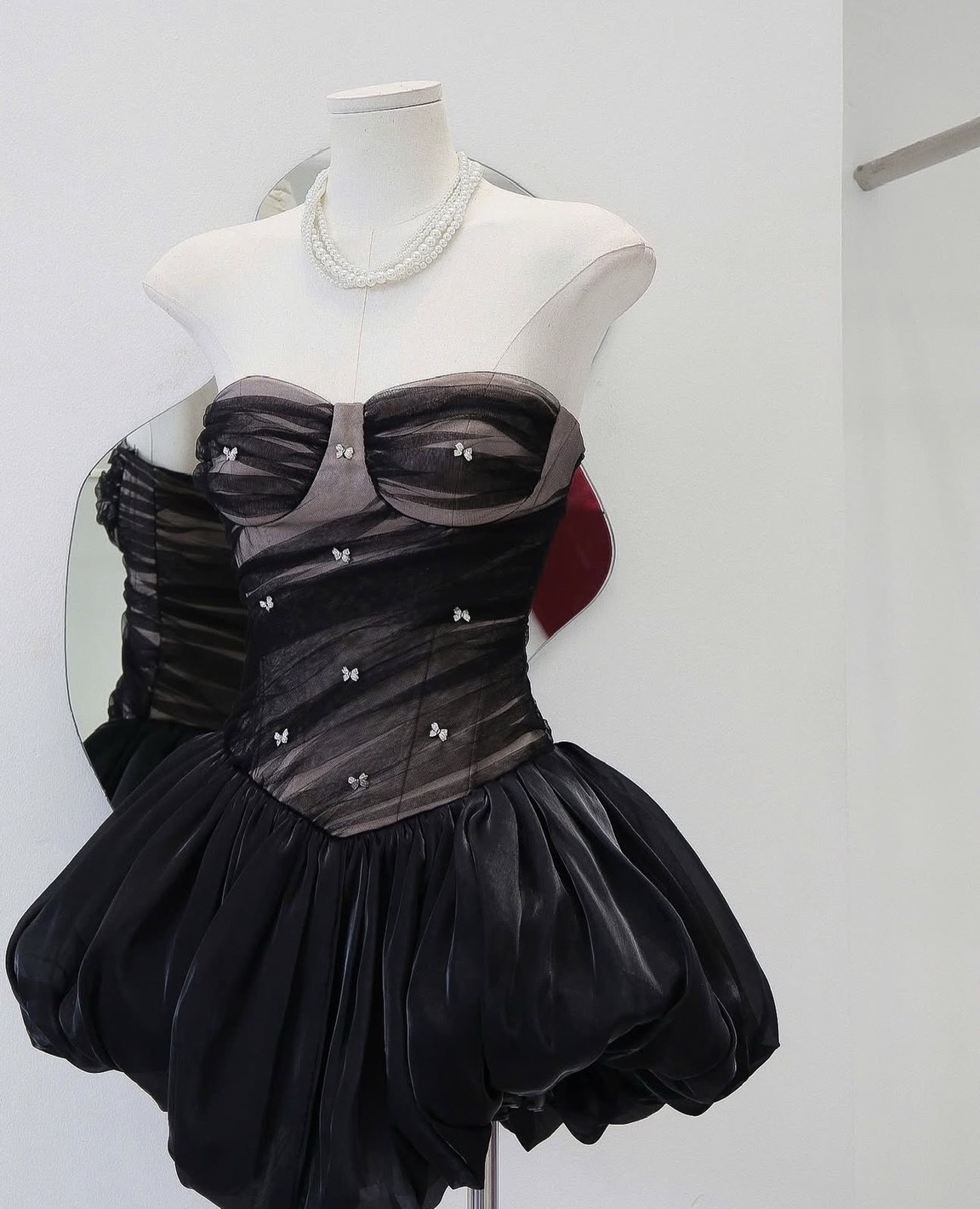 ชุดเดรส เกาะอก แต่งเพชร สีดำ สีขาว BRAND WABISABI 2175 Size S