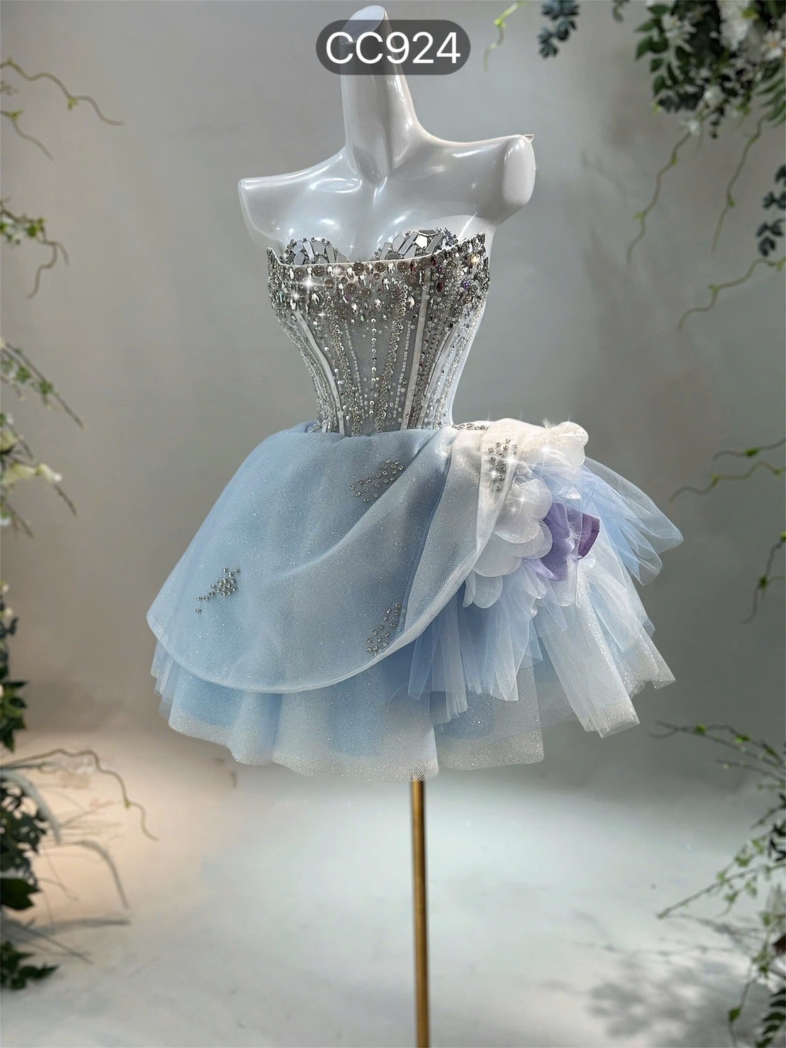 ชุดเดรส เกาะอก แต่งเพชร+ดอก 2009 Size M