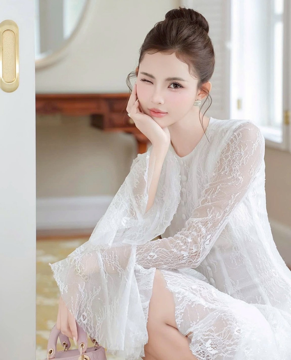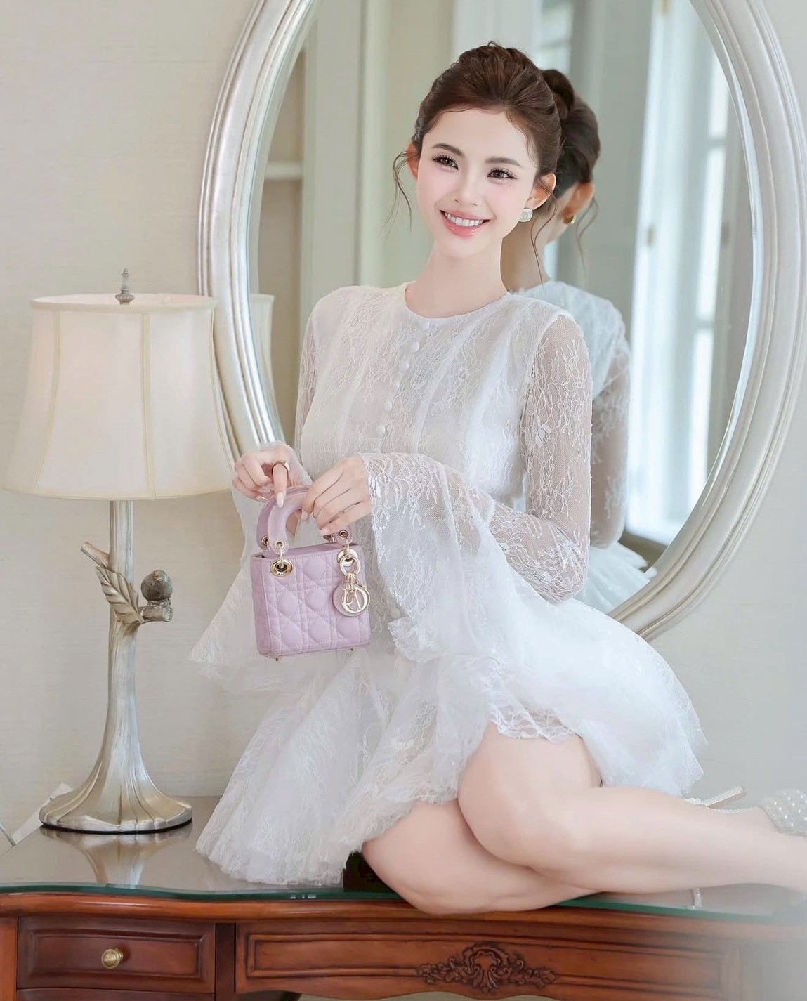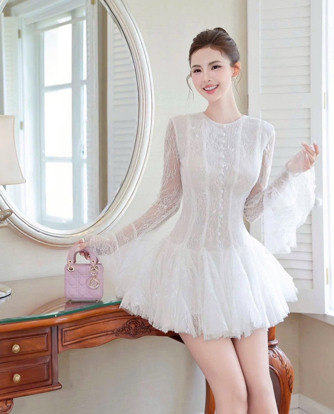 ชุดเดรส แขนยาว ลูกไม้ กระโปรงฟู TRANALI 2202 SIZE S-M