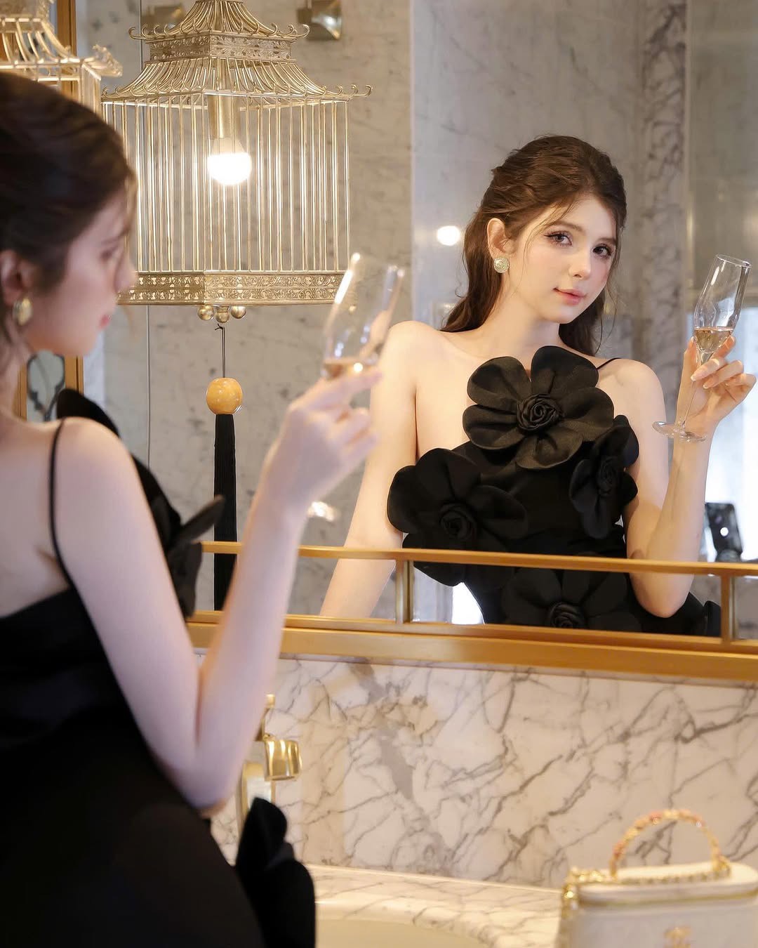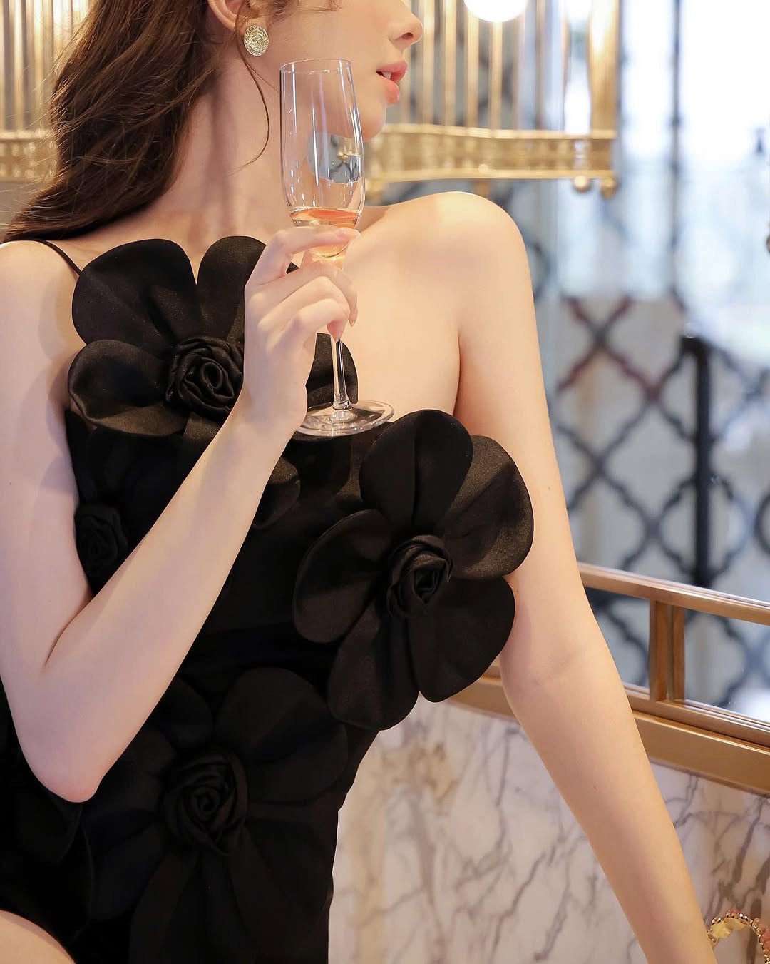 ชุดเดรส แต่งดอก สีดำ BRAND TRANALI 2168 Size S-M