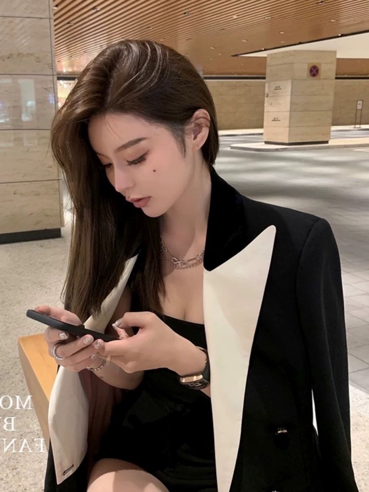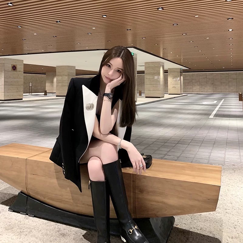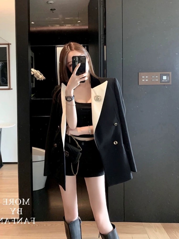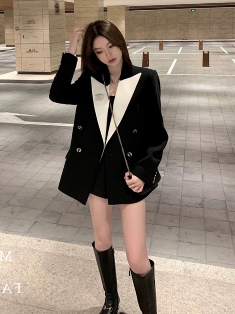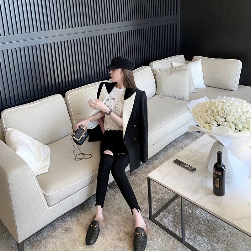 เบลเซอร์ ปกขาว สีดำ แบรนด์แท้ นำเข้า 6001 Size S,M,L